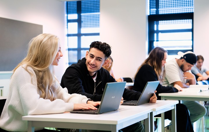 En kille och en tjej sitter i ett klassrum.