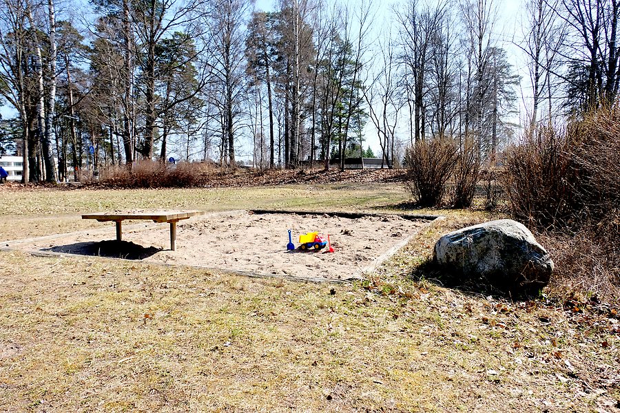 Sandlåda och bänkar.